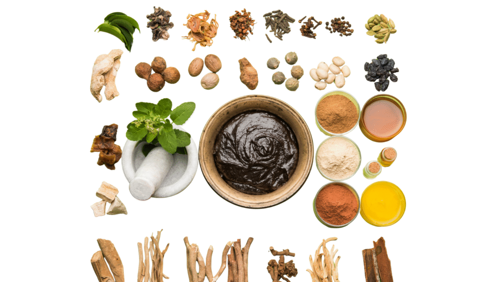 - Stress management: Yoga, pranayama, and meditation complement the adaptogenic power of spices.